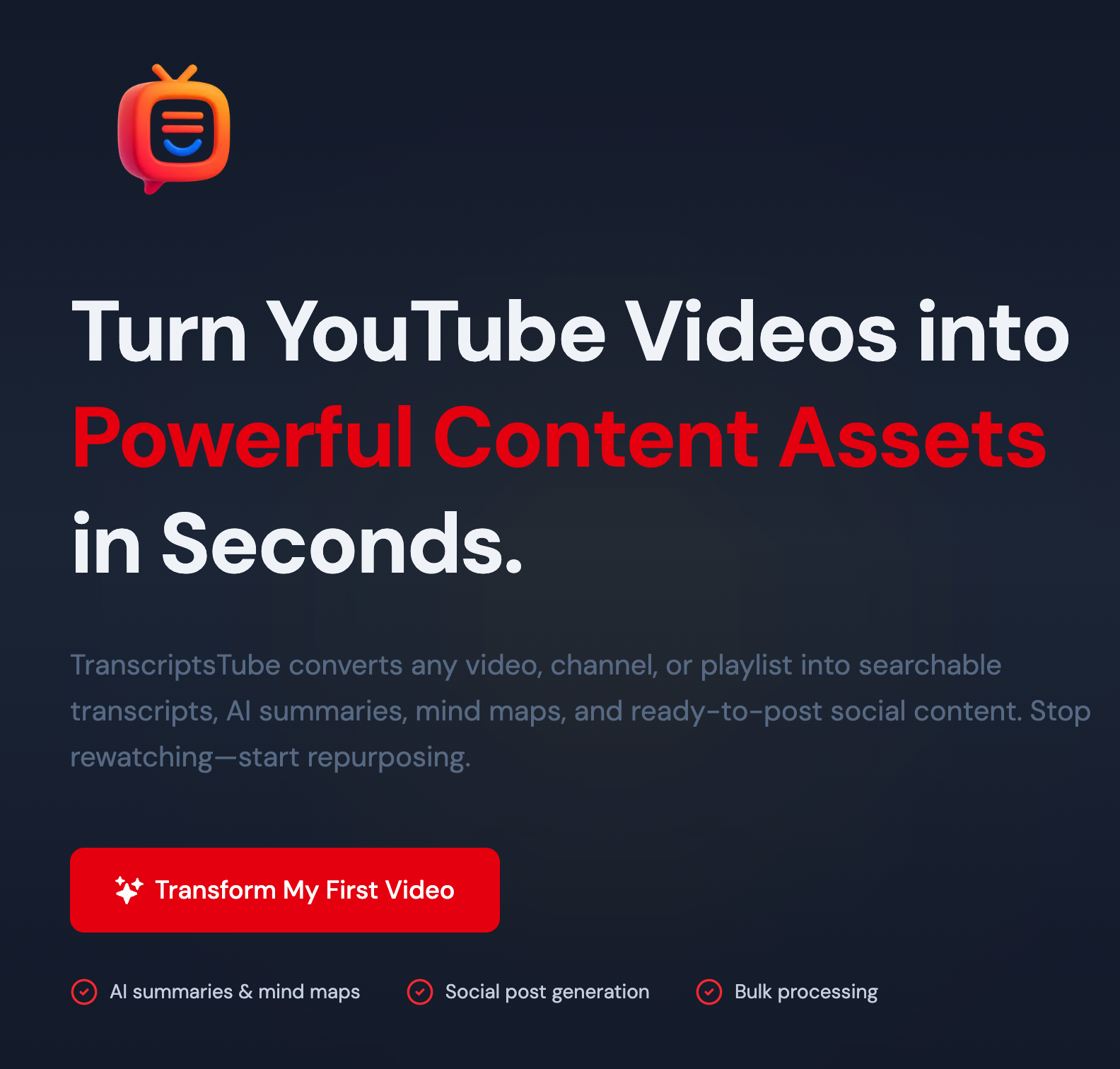 A YouTube tool that turns videos into transcripts, AI summaries, mind-maps, & social media posts.