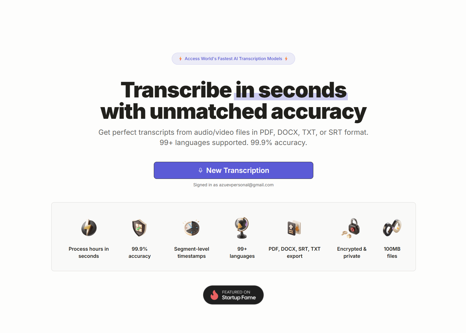 Lightning-fast AI audio & video transcription.